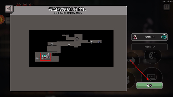 4、在地图界面选择要瞬移的目的地,点击【移动】按钮,完成场景瞬移以继续探索。