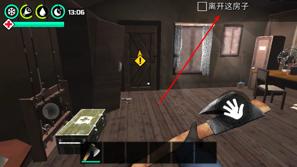 1、在室内场景找到床后执行【睡觉】操作,可有效恢复角色状态,为后续离开房子的探索行动储备必要精力。