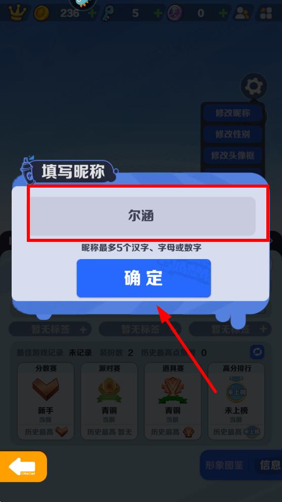 4、在修改页面输入需要修改的新昵称后点击确定即可完成修改。