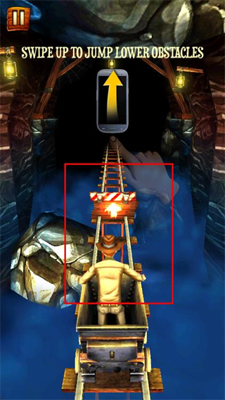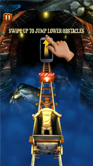 2、遇到下方障碍时,向上滑动屏幕,操控矿车跳跃躲避障碍。