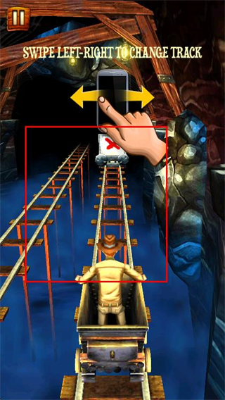 3、遇到上方障碍时,向下滑动屏幕,让矿车俯身躲避障碍。