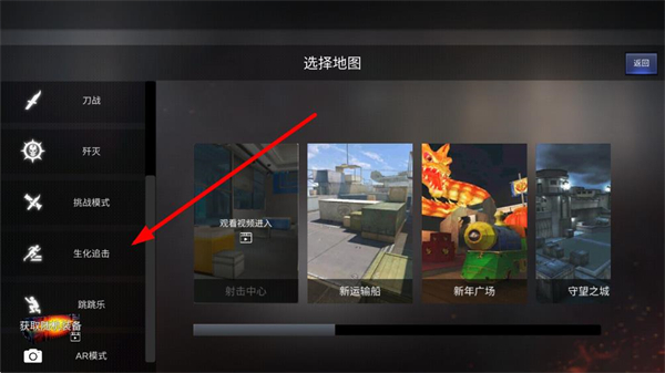 2、在模式列表中,找到生化追击选项并点击,进入生化模式的地图选择页面。