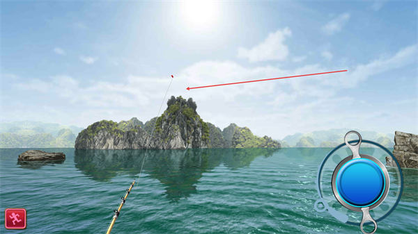 2、鱼钩入水后,等待鱼咬钩,观察浮标动态,准备触发起竿操作。