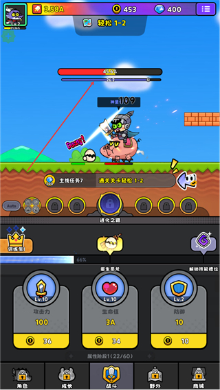 3、继续战斗,触发敌方变身,持续攻击敌人,推进关卡进度。