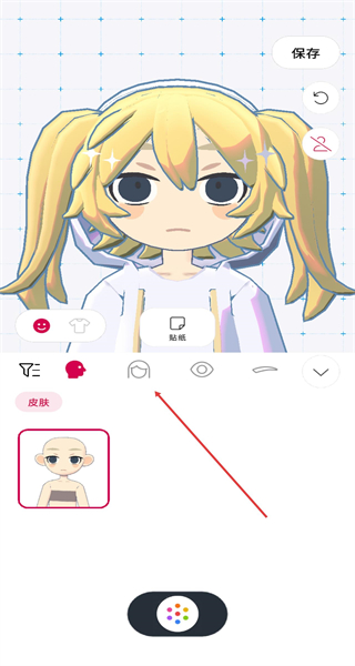 2、进入角色装扮界面,调整发型、皮肤等形象元素,选好后点击保存,固定虚拟形象外观。