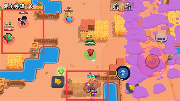 荒野决斗是单人或双人战斗模式,每局10名玩家,最终赢家只有一位/一组。通过摧毁木箱或击杀敌人获取能量块,提升攻击力和生命值,毒雾会不断从外向内包围,英雄身处不断缩小的安全区域中,淘汰其他玩家,生存排名越高则奖励越丰富。