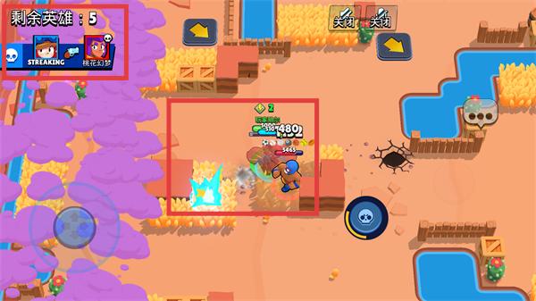 2、击败目标后【剩余英雄:5】,贴近新敌方目标打出【880】伤害,持续削减其血线以巩固优势。