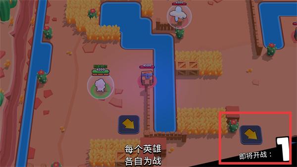 1、界面显示【每个英雄各自为战】,等待【即将开战:1】倒计时结束,进入对局后优先依托地形隐蔽。