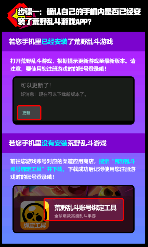 5、绑定成功后,重新打开荒野乱斗账号绑定工具APP,荒野乱斗新版本下载页面。