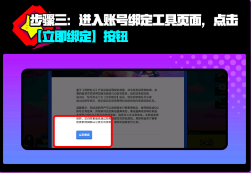 3、进入账号绑定工具页面。点击【立即绑定】按钮。