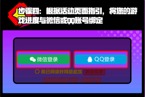4、根据活动页面的指引,将你的游戏进度与微信或者QQ账号绑定。