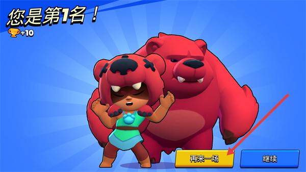 4、结算界面显示【您是第1名!】,可点击【再来一场】重试对局,或点【继续】领取对局奖励。