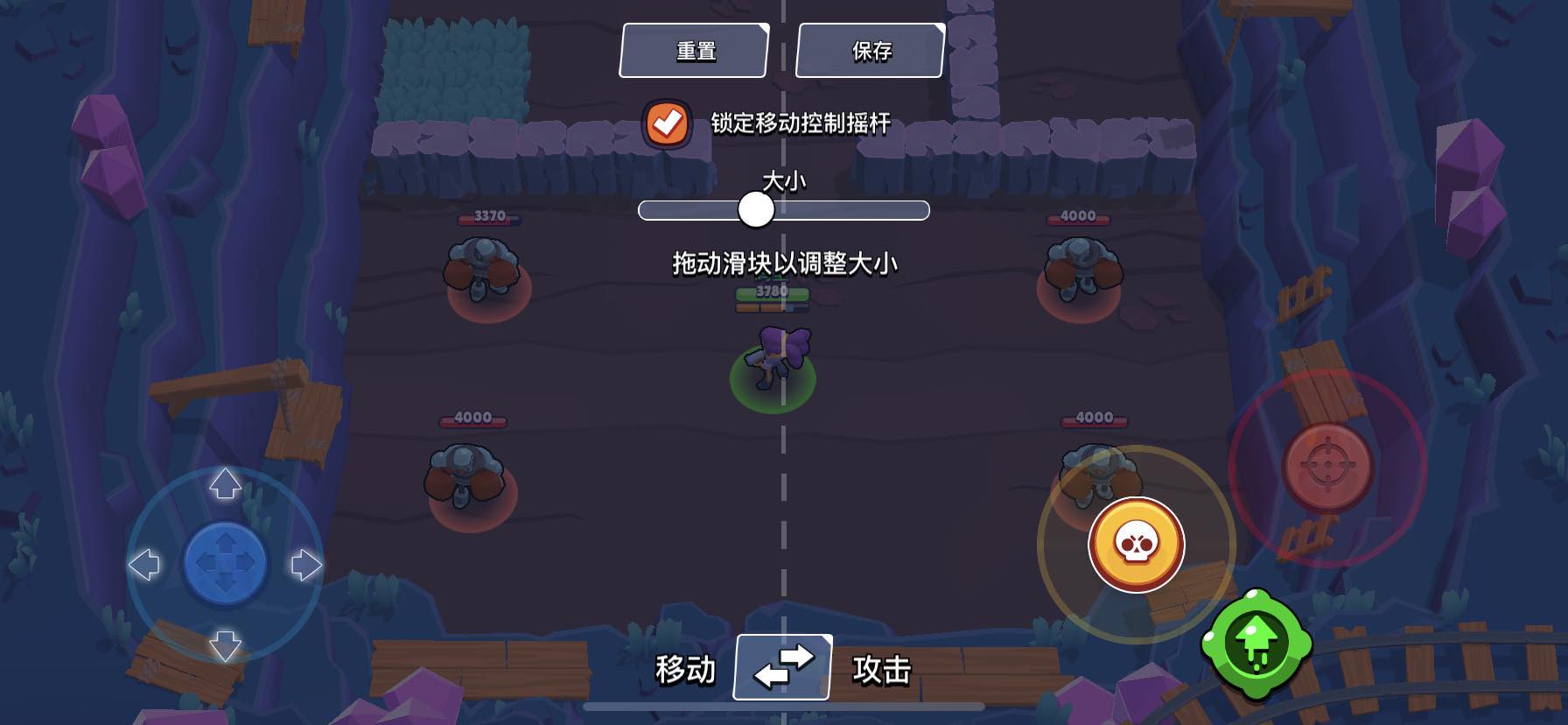 2、选定虚拟摇杆设置点击一下方向或攻击摇杆,就会弹出选项【锁定移动控制摇杆】。