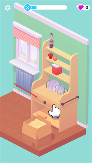 1、模拟了真实的搬家与布置新家过程,每个箱子都装着未知物品,体验将一个空间从空荡杂乱变为温馨整洁的成就感。