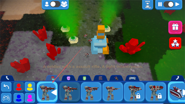 2、召唤A-soldierwithaassaultrifle等步兵单位,组建战斗部队。