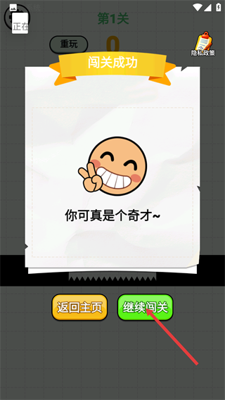 3、【闯关成功】后,点击【继续闯关】按钮,可进入下一个关卡,挑战更复杂的场景与任务。