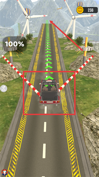 2、车辆进入跑道后沿绿色箭头方向加速,积蓄动力等待弹射,确保在合适时机触发弹射动作。