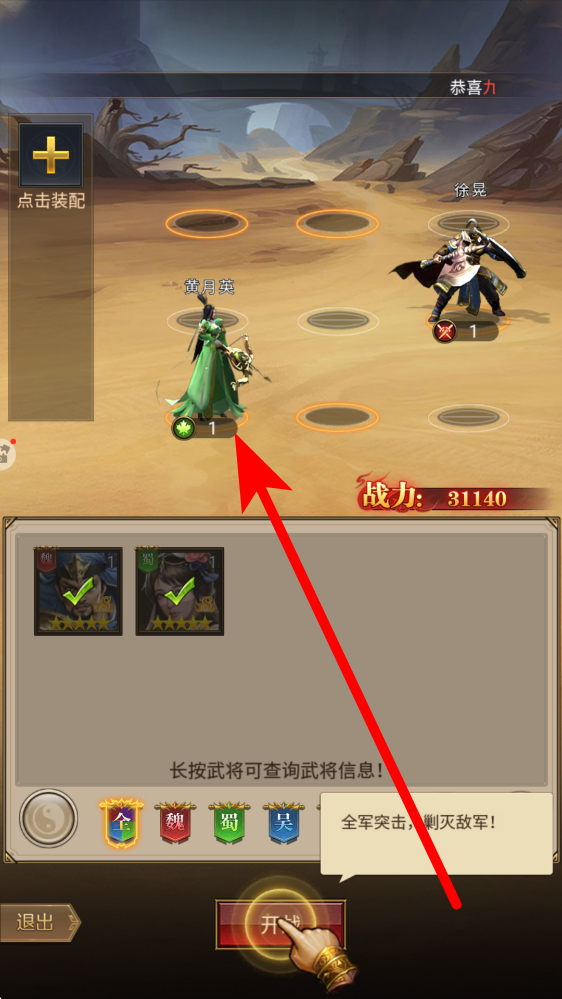 2、然后放置武将,在战斗的准备界面,将黄月英等武将放置到合适的位置,合理规划的布置武将阵容,为后续战斗做好准备。