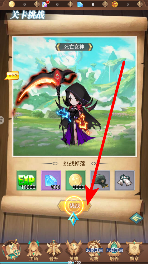 2、玩家然后点击挑战关卡,在关卡挑战的界面,找到想要挑战的关卡,点击挑战,进入关卡与敌人展开对战,推进冒险进程。