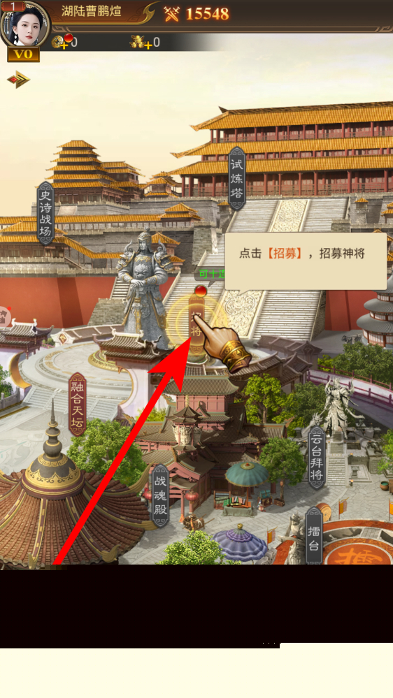 3、接着进行招募武将,点击招募按钮,可招募神将,像黄月英等武将都有机会被招募到麾下,充实自己的武将阵容,增强战力。