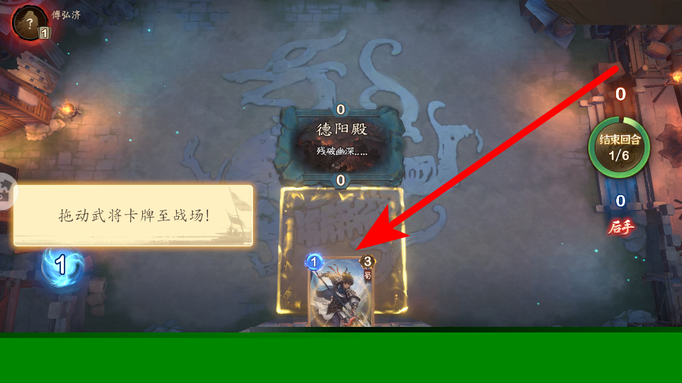 1、进入对战后,按照提示,拖动武将卡牌至战场,将自己的武将部署到相应位置,为后续的对战交锋做好准备,开启卡牌对战的第一步。