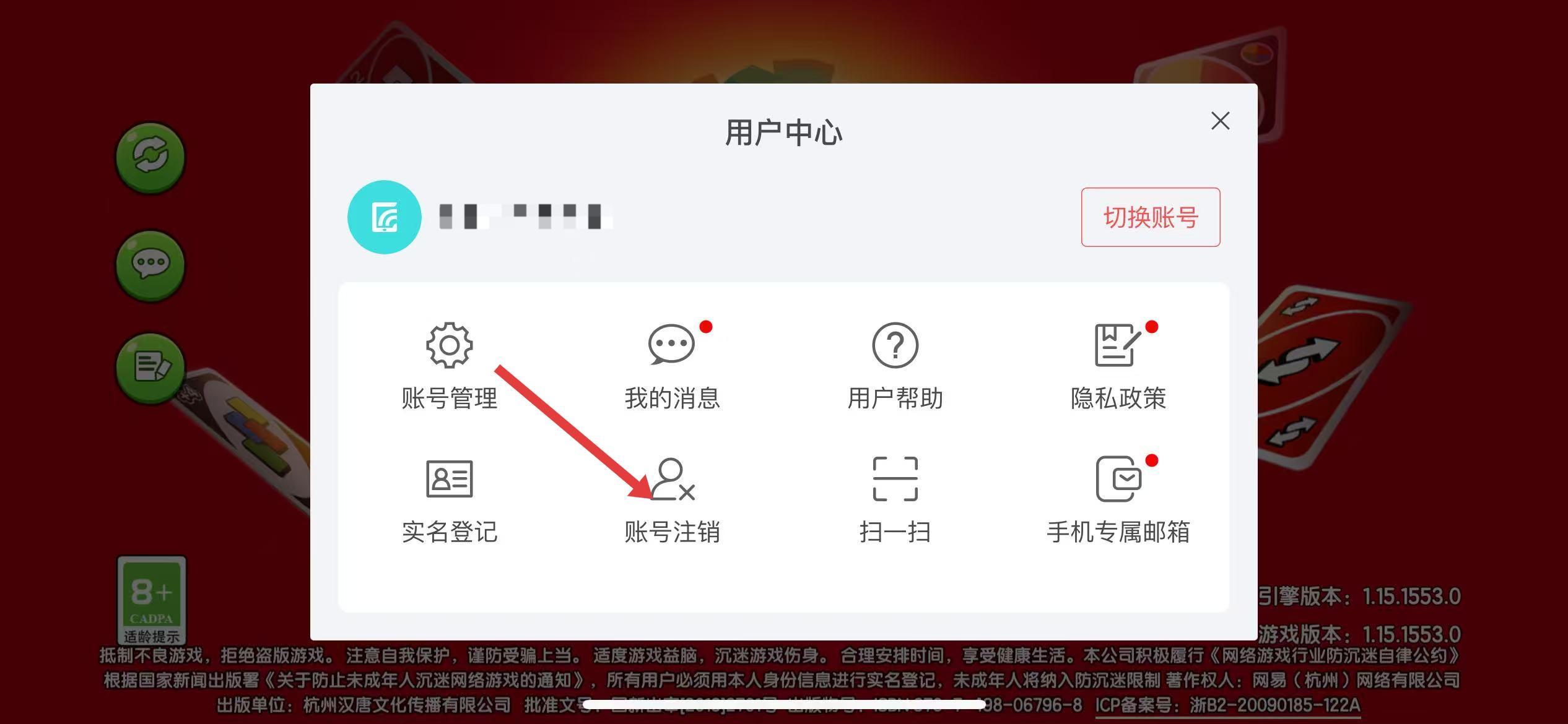 2、在用户中心界面中,点击账号注销选项。