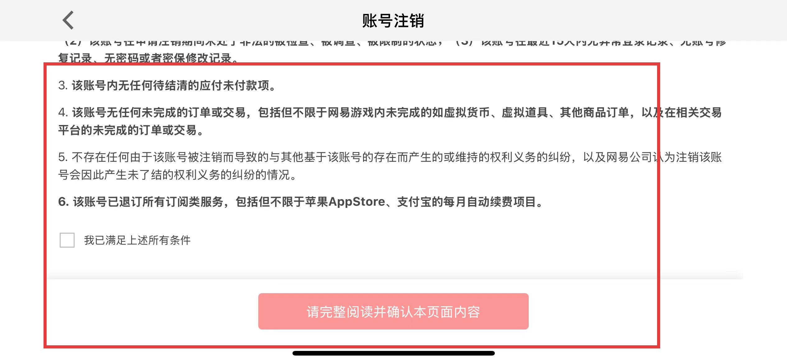 3、确认自己满足注销条件后,勾选我已满足上述所有条件。