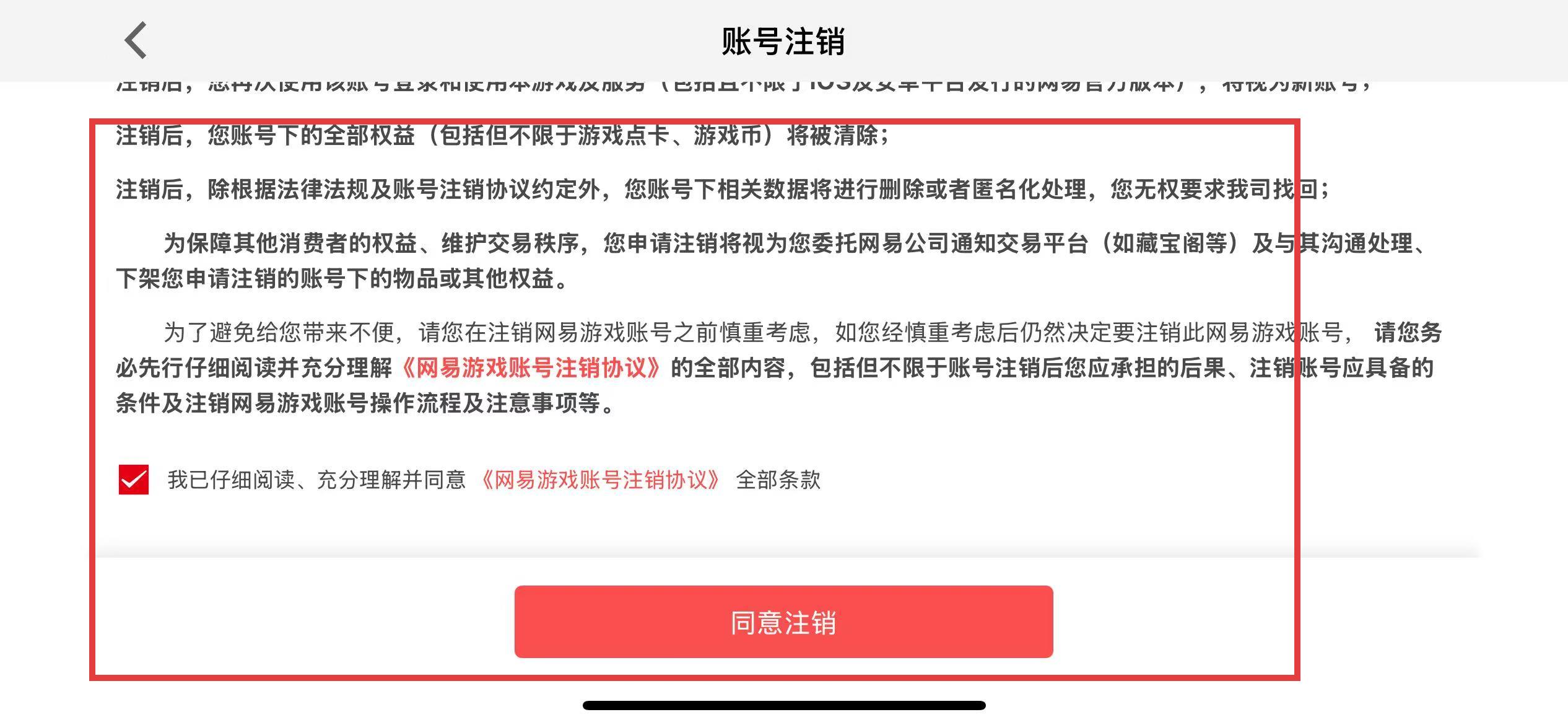 4、点击同意注销按钮,按照后续提示完成账号注销操作。