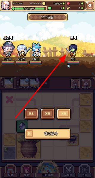 3、进入战斗回合后,操控己方角色与敌方对战,也可点击跳过战斗按钮,快速完成战斗流程推进进度。