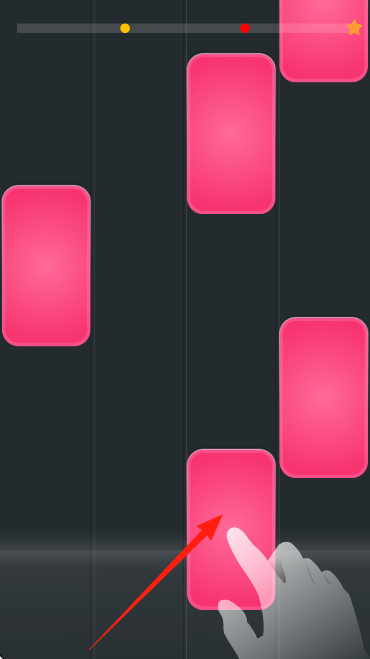 1、进入首关选择流行音乐曲目,看着首个蓝色磁贴随鼓点亮起,点击屏幕开启首次节奏挑战。