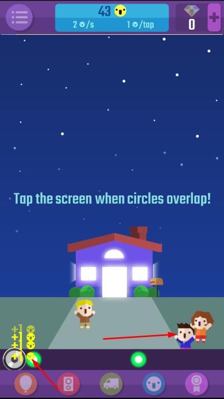2、根据屏幕上的提示进行操作,当出现的圆形图标重叠时,迅速点击屏幕,即可获得分数,通过不断准确点击,累积分数。