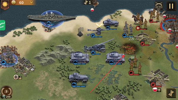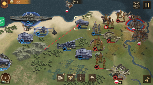以二战经典战役为蓝本设计关卡,从欧洲战场的平原对决到太平洋战场的岛屿争夺,每个场景都还原对应战役的地形特点与历史背景。