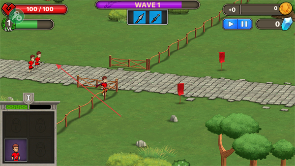 1、点击TAPTOSTARTCITYSDEFENCE按钮,开启第一波防御关卡。
