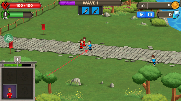 2、部署己方士兵如红色步兵到道路区域,拦截敌方单位。