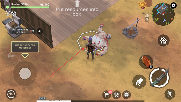 3、按提示Putresourcesintobox,收集资源,准备放入箱子。