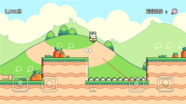 采用复古又可爱的像素画风,兔兔主角造型软萌讨喜,关卡场景色彩鲜艳,从青青草地到奇幻城堡,每处场景都充满童趣,视觉体验轻松治愈。