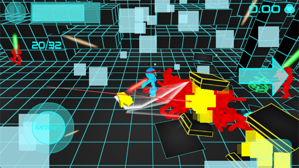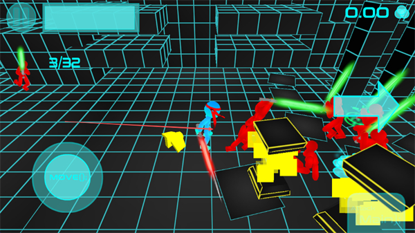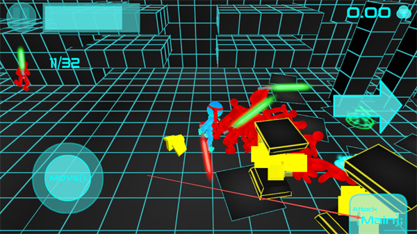 1、操控角色移动点击MOVE,靠近红色敌人,用光剑攻击,积累击杀数。