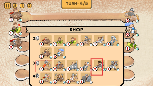 3、到【TURN-4/5】时,进入【SHOP】界面,挑选合适的兵种单位,合理搭配来增强战力。