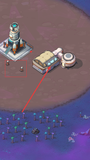 2、飞船成功着陆后,点击飞船,进入星球表面,开始后续的基地建设等操作,利用星球资源发展。