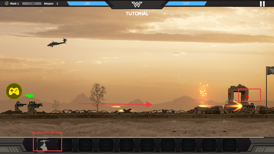 2、跟随教程提示,点击发送士兵的按钮,指挥士兵向敌人发起进攻,熟悉部队指挥操作。