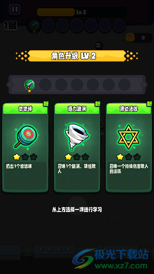 3、通过不断的杀敌还能够升级以此获得从是三个技能中选择一个技能。