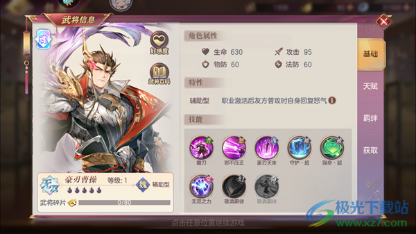 1、豪刃曹操:辅助型,职业激活后友方普攻时自身回复怒气。
