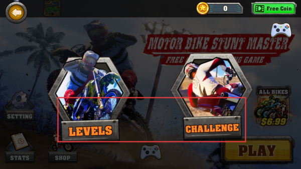 2、在模式界面,选择【LEVELS】或【CHALLENGE】模式,开启特技挑战。