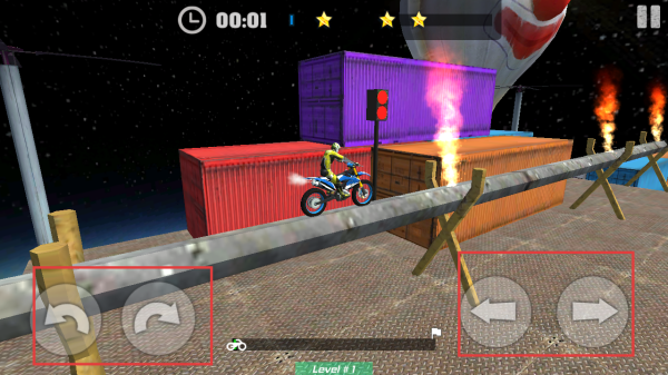 3、游戏内通过左侧重心按键和右侧方向按键,操控摩托完成特技关卡。