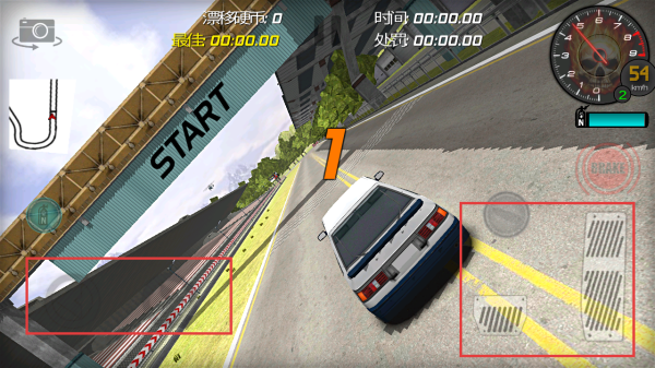 3、利用左侧操作区域控制车辆方向,利用右侧操作区域控制车辆前进刹车。