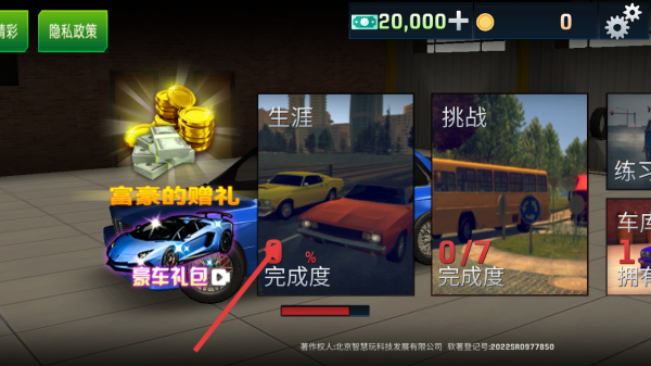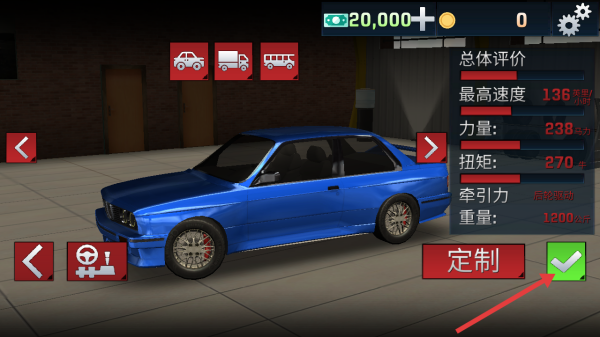 1、点击主界面【生涯】模式区域,进入车辆选择界面。
