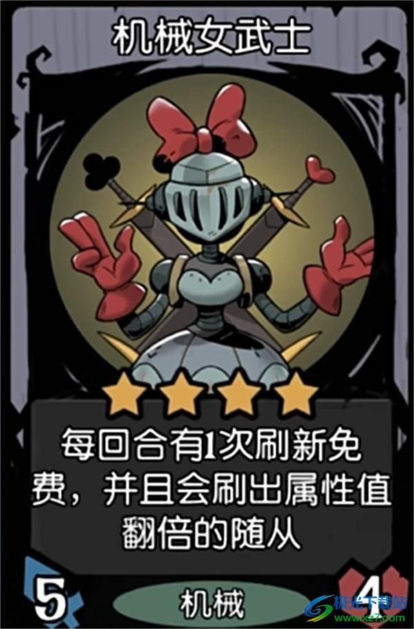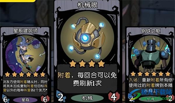 5、最后是机械四星的新附着牌,附着之后每回合可以免费刷新一次,如果配合星系建筑师的话一贴就能够直接增加每回合5次免费刷新次数。