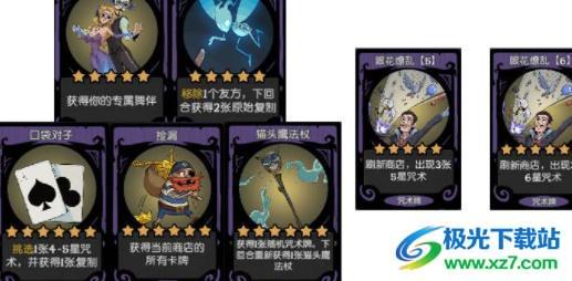 浪漫双人舞和洞穴奇遇能够帮助我们得到更多的舞伴,从而有机会开出6本咒术,而口袋对子则有一定概率能够帮助我们获取到浪漫双人舞和洞穴奇遇;眼花缭乱能够提供试错机会,捡漏则能帮助我们直接拿下商店中刷新出来的所有咒术;而猫头鹰法杖一张牌就能提供大量咒术,如果前期能够拿到就可以每回合双开并且快速上本,然后升本咒术就可以直接用掉用来补充战力。