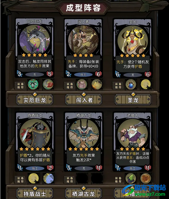 1、阵容组成:灾厄巨龙、闯入者、圣龙、持盾战士、栖湖古龙、老猎人。