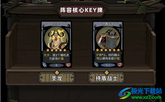 2、阵容核心KEY牌:圣龙、持盾战士。